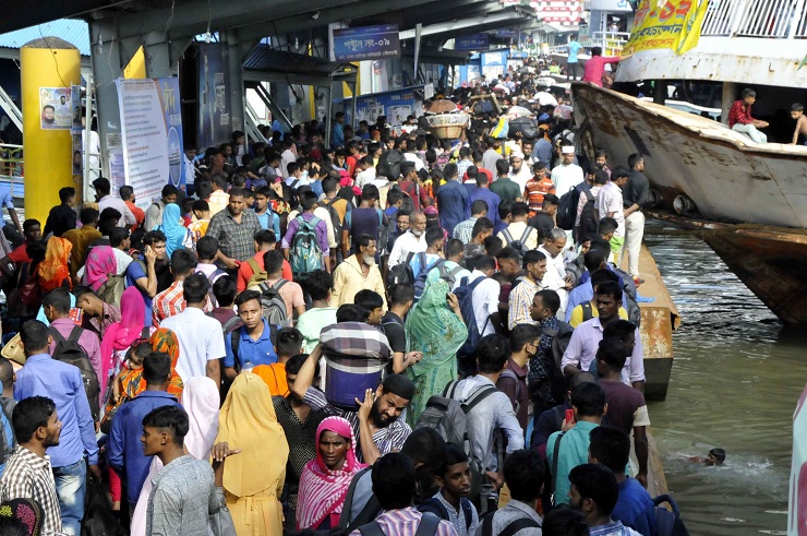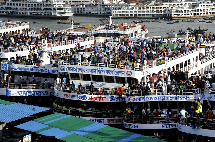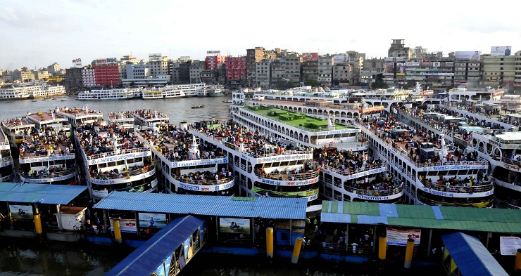 শুক্রবার সদরঘাট লঞ্চ টার্মিনালে যাত্রীদের  উপচেপড়া ভিড় দেখা গেছে। অতিরিক্ত ভিড়ের কারণে দুপুর দুইটা থেকে জগন্নাথ বিশ্ববিদ্যালয় গেটের সামনে থেকে সদরঘাট টার্মিনালের দিকে কোনো গাড়ি ঢুকতে দেয়া হয়নি। এমনকি মোটসাইকেলও ঢুকতে দেওয়া হয়নি।