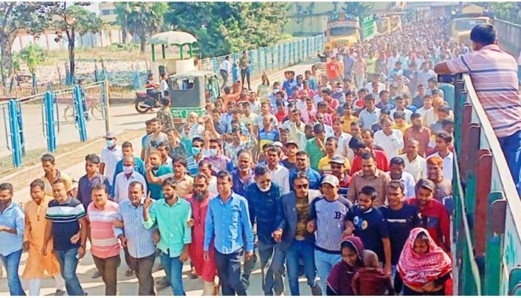 জামালপুরের সরিষাবাড়ীতে দলীয় নৌকার প্রার্থী মাহবুবুর রহমান হেলাল এর বিরোধীতার অভিযোগে আওয়ামী লীগ নেতা রফিকুল ইসলাম কে বহিস্কারের সিদ্ধান্তের প্রতিবাদে বিক্ষোভ মিছিল ও প্রতিবাদ সমাবেশ করেছেন তৃনমুল আওয়ামী লীগের নেতা কর্মী ও সর্মথকরা। রোববার (৩রা ডিসেম্বর) সকাল সাড়ে ১১ টায় উপজেলার পোগলদিঘা ইউনিয়নের তারাকান্দি যমুনা সারকারখানা এলাকায় প্রধান সড়ক প্রদক্ষিন করে এ বিক্ষোভ মিছিল শেষে বিজয় ভবনের সামনে এসে প্রতিবাদ সমাবেশ করে রফিকুল ইসলাম অনুসারী তৃনমুল আওয়ামী লীগের নেতা কর্মী ও সর্মথকরা।