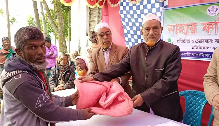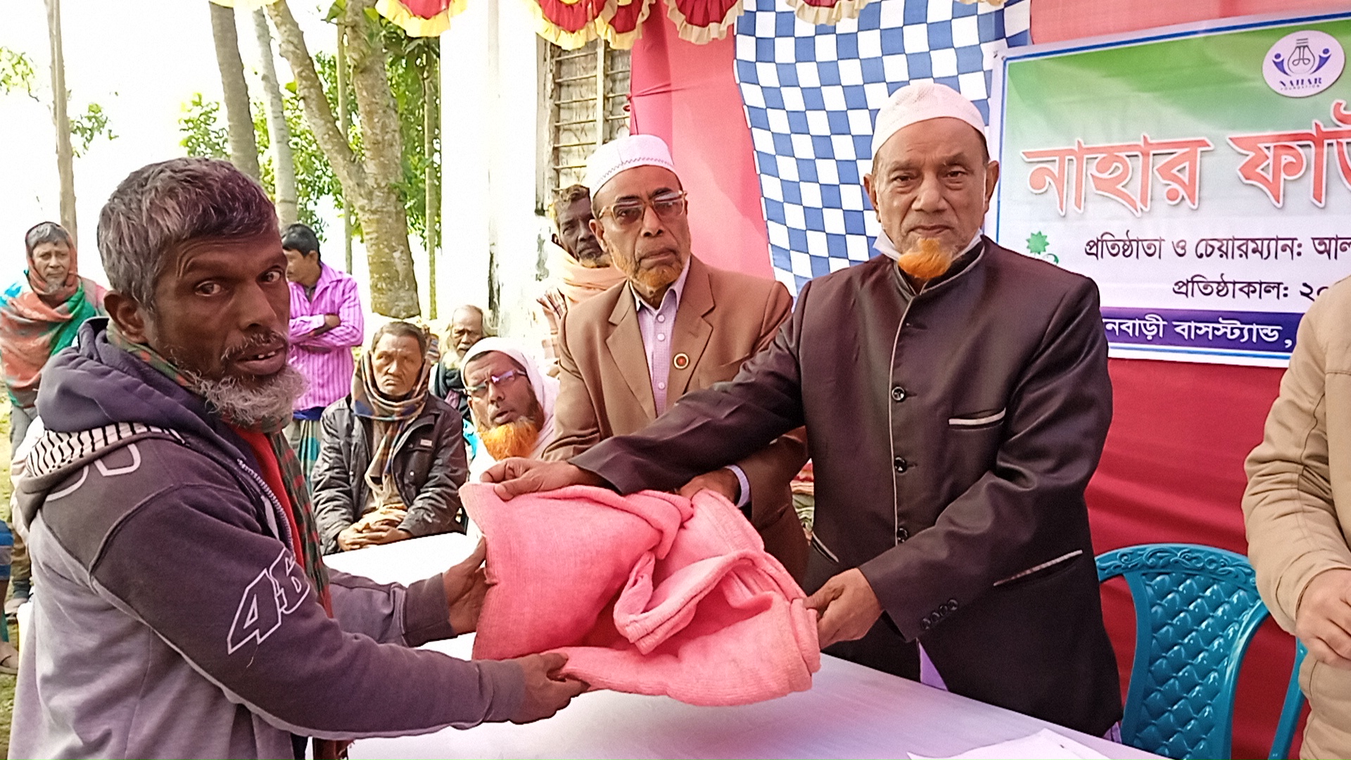 টাংগাইলে ধনবাড়ী উপজেলা সয়া গ্রামে আজ সকাল ১০ ঘটিকার সময় নাহার ফাউন্ডেশন এর আয়োজনে দরিদ্র মানুষের মাঝে কম্বল বিতরণ করেন নাহার ফাউন্ডেশন এর প্রতিষ্ঠাতা ও চেয়ারম্যান আলহাজ গিয়াস উদ্দিন তোতা হাজী নাহার ফাউন্ডেশন এর পক্ষ থেকে কম্বল বিতরণ। কিছুটা হলেও দুঃখীনির মুখে ফুটিয়েছি মোরা হাসি,শীতার্ত আজ থাকবে সুখে আশা মনে পুষি! থাকব পাশে এভাবে আজীবন দুর্দশা আর দুর্দিনে, আনতে তব তরে শুভক্ষণ ভবিষ্যতেও বুঝব মানে। এসো দূর করি শীতার্ত মানুষের কষ্টের কালো রাত অসহ্য শীতে সাধারণ মানুষ যেখানে অতিষ্ঠিত, সেখানে একবারও কী সুবিধা বঞ্চিত মানুষের কথা চিন্তা করে দেখেছেন? কীভাবে আছে তারা? তাদের কী শীত লাঘবের কিছু আছে। অন্যরা যখন শীতে ঘরের ভিতরে লেপ, কম্বলের নিচে, তখন নাহার ফাউন্ডেশন সদস্যরা সয়া গ্রামে সুবিধা বঞ্চিত মানুষের মাঝে কম্বল বিতরণে ব্যবস্থা করেন। তাদের হাতে রাখি। সহানুভূতির আপন হাত-এই নাহার ফাউন্ডেশন বছরের শুরু থেকে সুবিধা বঞ্চিত মানুষ সমস্যা সমাধানে কাজ করে যাচ্ছে নাহার ফাউন্ডেশন ধনবাড়ী তার ধরাবাহিকতায় আজ ২৩ জানুয়ারি নিজ গ্রামে গ্রামের ১৫৯ জন সুবিধা বঞ্চিত মানুষের মাঝে কম্বল বিতরণ করে দয়িতা নাহার ফাউন্ডেশন । নাহার ফাউন্ডেশননের প্রতিষ্ঠাতা নিজে উপস্থিত থেকে সুবিধা বঞ্চিতদের ভিতরে কম্বল বিতরণ করেন।