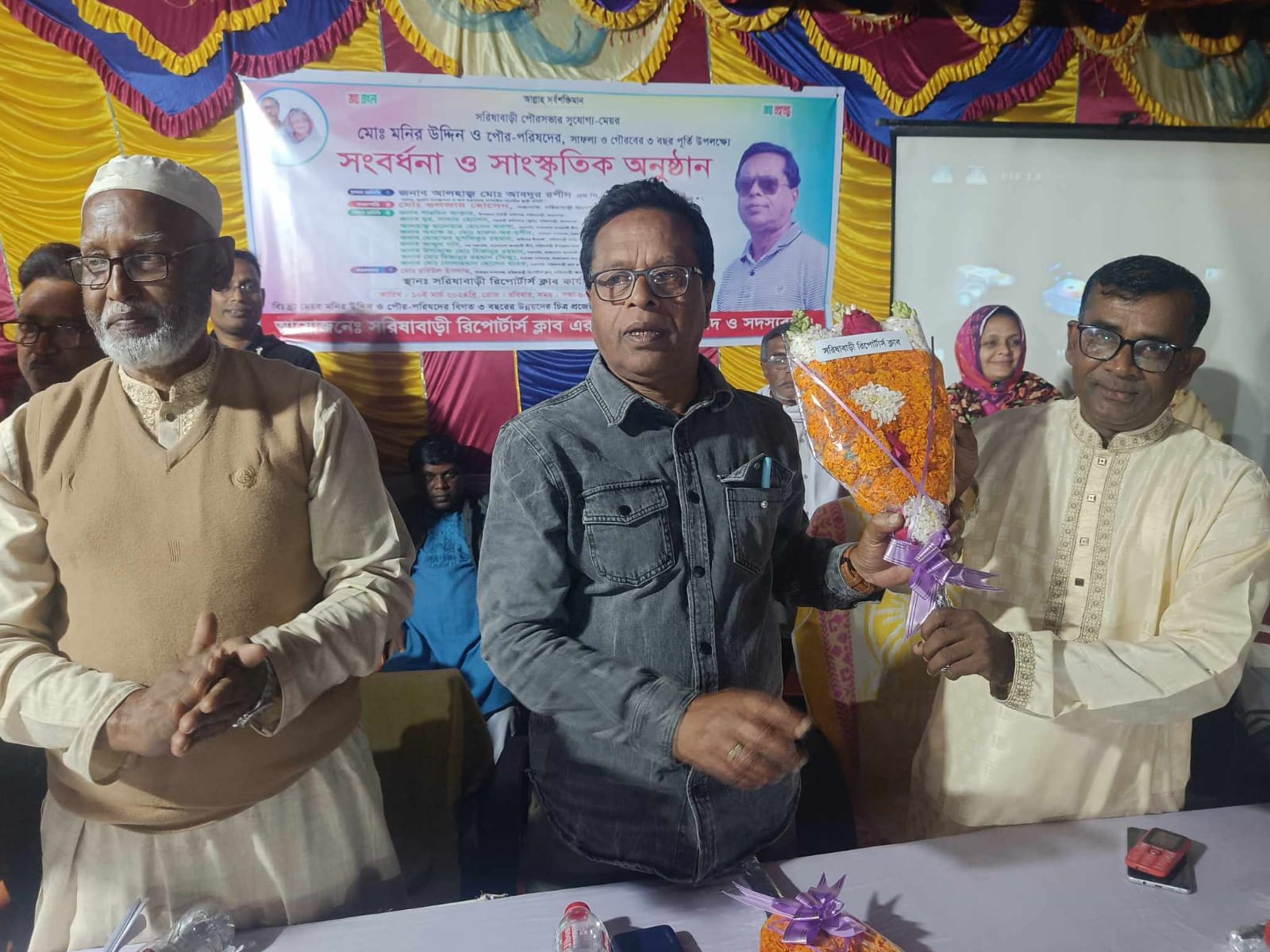 রবিবার (১০মার্চ) সন্ধ্যায় সরিষাবাড়ি রিপোর্টার্স ক্লাব সংলগ্ন কার পার্কিং মাঠে সরিষাবাড়ি রিপোর্টার্স ক্লাবের সভাপতি মোঃ গুলজার হোসেন এর সভাপতিত্বে ও সাধারণ সম্পাদক রবিউল ইসলামের সঞ্চালনায় সংবর্ধনা, আলোচনা সভা ও সাংস্কৃতিক অনুষ্ঠানের প্রধান অতিথি হিসেবে মোবাইল ফোনে বক্তব্য রাখেন, নবনির্বাচিত সংসদ সদস্য আলহাজ্ব মোঃ আবদুর রশীদ এমপি, সদস্য দুর্যোগ ব্যবস্থাপনা ও ত্রাণ মন্ত্রণালয় সম্পর্কিত সংসদীয় স্থায়ী কমিটি।https://www.facebook.com/share/v/nbuC1ckt1sQpszn2/?mibextid=qi2Omg