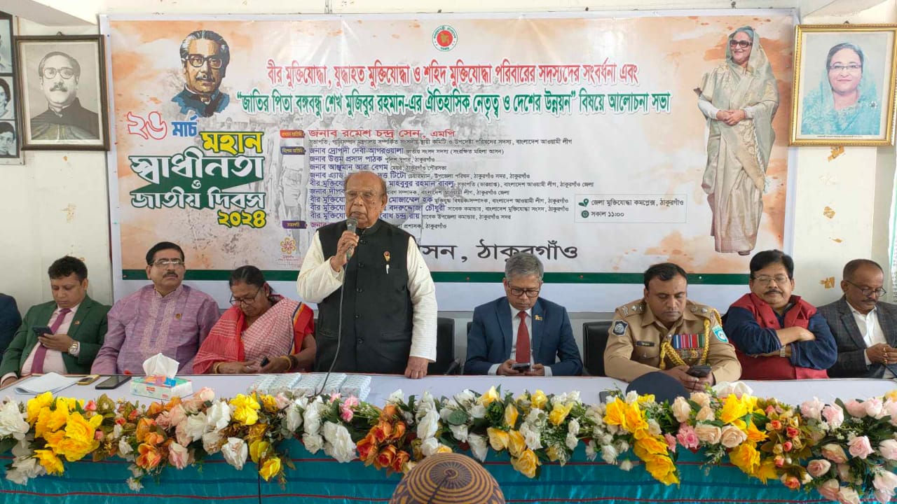 নানা আয়োজনের মধ্য দিয়ে ঠাকুরগাঁও জেলায় মহান স্বাধীনতা ও জাতীয় দিবস পালিত হয়। দিবসটি পালনে মঙ্গলবার সূর্যোদয়ের সাথে সাথে অপরাজেয় ৭১ প্রাঙ্গনে ৩১ বার তোপধ্বনির মাধ্যমে অনুষ্ঠানমালা শুরু হয়। এ সময় শ্রদ্ধাঞ্জলি প্রদান করেন বাংলাদেশ আওয়ামীলীগের উপদেষ্টা মন্ডলীর সদস্য ও ঠাকুরগাঁও-১ আসনের সংসদ সদস্য রমেশ চন্দ্র সেন এমপি । ঠাকুরগাঁও জেলা মুক্তিযোদ্ধা কমপ্লেক্স ভবনের সভাকক্ষে বীর মুক্তিযোদ্ধা, যুদ্ধাহত মুক্তিযোদ্ধা ও শহিদ মুক্তিযোদ্ধা পরিবারের সদস্যদের সংবর্ধনা প্রদান এবং “জাতির পিতা বঙ্গবন্ধু শেখ মুজিবুর রহমানের ঐতিহাসিক নেতৃত্ব ও দেশের উন্নয়ন” বিষয়ে আলোচনা সভা অনুষ্ঠিত হয়। সভায় ঠাকুরগাঁও জেলা প্রশাসক মো: মাহবুবুর রহমানের সভাপতিত্বে বক্তব্য দেন প্রধান অতিথি আওয়ামীলীগের উপদেষ্টা মন্ডলীর সদস্য ও ঠাকুরগাঁও-১ আসনের সংসদ সদস্য রমেশ চন্দ্র সেন, বিশেষ অতিথি সংরক্ষিত আসনের সংসদ সদস্য দ্রৌপদী দেবী আগারওয়ালা, পুলিশ সুপার উত্তম প্রসাদ পাঠক, সদর উপজেলা চেয়ারম্যান এ্যাড. অরুনাংশু দত্ত টিটো, জেলা আওয়ামী লীগের সভাপতি বীর মুক্তিযোদ্ধা মাহাবুবুর রহমান বাবলু, সাধারণ সম্পাদক দীপক কুমার রায়, মুক্তিযোদ্ধা বিষয়ক সম্পাদক বীর মুক্তিযোদ্ধা মোজাম্মেল হক, জেলা সাবেক মুক্তিযোদ্ধা কমান্ডার বীর মুক্তিযোদ্ধা বদরুদ্দোজা বদর, সাবেক উপজেলা কমান্ডার বীর মুক্তিযোদ্ধা সুবোধ চন্দ্র রায়, ঠাকুরগাঁও প্রেসকাব সভাপতি মনসুর আলী প্রমুখ। এছাড়াও দিবসটি পালনে জেলা প্রশাসনের পক্ষ থেকে বিভিন্ন মসজিদ, মন্দির ও গির্জায় বিশেষ প্রার্থনা করা হয়। বিকেলে সরকারী বালক উচ্চ বিদ্যালয় বড় মাঠে জেলা প্রশাসন ও পৌরসভার মধ্যে প্রীতি ফুটবল ম্যাচ অনুষ্ঠিত হয়। এর আগে পৌর শহরের আর্ট গ্যালারীতে অবস্থিত অপরাজেয়-৭১ প্রাঙ্গণে জেলা প্রশাসক মো: মাহবুবুর রহমান, পুলিশ সুপার মোহাম্মদ জাহাঙ্গীর হোসেন, আ’লীগ ও বিভিন্ন রাজনৈতিক দল, ঠাকুরগাঁও প্রেস কাবসহ বিভিন্ন সামাজিক ও সাংস্কৃতিক সংগঠনের পক্ষ থেকে শ্রদ্ধাঞ্জলি প্রদান করা হয়। পরে অপরাজেয়-৭১ প্রাঙ্গন থেকে শহিদ মোহাম্মদ আলীর স্মৃতিস্তম্ভ পর্যন্ত র‌্যালি বের করা হয়। র‌্যালিতে জেলা প্রশাসন, পুলিশ প্রশাসন, আ’লীগসহ বিভিন্ন রাজনৈতিক, সামাজিক সংগঠনের মানুষজন অংশ নেন। পাশাপাশি পৌর শহরের শহিদ মোহাম্মদ আলী, নরেশ চৌহান, মুবিববর্ষ চত্বর, ডিসি পর্যটন পার্কের মুক্তিযুদ্ধের স্মৃতিস্তম্ভে শ্রদ্ধা নিবেদন করা হয়। সরকারি বালক উচ্চ বিদ্যালয় বড় মাঠে আনুষ্ঠানিকভাবে জাতীয় পতাকা উত্তোলন, কুচকাওয়াজ, সমাবেশ, জাতীয় সঙ্গীত পরিবেশন ও ক্রীড়া প্রতিযোগিতার আয়োজন করে জেলা প্রশাসন।