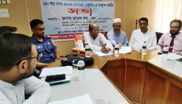 তিনি বলেন, টেন্ডারে ভুয়া কাগজ দিয়ে আবেদনকারীদের চিহ্নিত করে তাদেরটা বাতিল করতে হবে। আমি যতদিন বেচে থাকবো এই হাসপাতালের জন্য কাজ করে যাব। এই হাসপাতালে রোগীদের অত্যাধিক চাপ থাকে। এই হাসপাতাল রংপুর বিভাগের এক নাম্বার হাসপাতাল রয়েছে। আমরা যাতে বাংলাদেশের ১০টি হাসপাতালের মধ্যে থাকতে পারি সেই প্রচেষ্টা অব্যাহত রাখতে হবে। সরকারী হাসপাতালগুলোতে সরকারী বিধি মোতাবেক নীতি অনুযায়ী কর্মকর্তা-কর্মচারীদের বসবাস করতে হবে। ঠাকুরগাঁও সদর উপজেলা স্বাস্থ্য ও পরিবার পরিকল্পনা অফিসের নিরাপত্তা ব্যবস্থা খুবই দুর্বল। নতুন পরিকল্পনার আওতায় ঠাকুরগাঁও সদর অফিসগুলোতে বহি: বিভাগের সীমিত সুবিধা সহ ১০ম তলা বিশিষ্ট কমপ্লেক্স নির্মিত করা হবে। ২৫০ শয্যা বিশিষ্ট জেনারেল হাসপাতালের আয়োজনে সভায় বাংলাদেশ আওয়ামী লীগের উপদেষ্টা মন্ডলীর সদস্য ও ঠাকুরগাঁও-১ আসনের সংসদ সদস্য রমেশ চন্দ্র সেনের সভাপতিত্বে বক্তব্য দেন হাসপাতালের তত্ত্বাবধায়ক ডা: সিরাজুল ইসলাম, গণপুর্ত বিভাগের নির্বাহী প্রকৌশলী মো: তৌহিদুজ্জামান, ঠাকুরগাঁও জেলা পরিষদ চেয়ারম্যান আব্দুল মজিদ আপেল, অতিরিক্ত পুলিশ সুপার (সদর সার্কেল) মিথুন সরকার, হাসপাতালের সিনিয়র কনসালটেন্ট ডা: মো: তোজাম্মেল হক, ঠাকুরগাঁও সদর উপজেলা চেয়ারম্যান মোশারুল ইসলাম সরকার, ঠাকুরগাঁও জেলা আওয়ামীলীগের সহ -সভাপতি মাহাবুবুর রহমান খোকন, ত্রাণ ও সমাজকল্যাণ বিষয়ক সম্পাদক নজরুল ইসলাম স্বপন, ঠাকুরগাঁও প্রেসক্লাব সভাপতি মনসুর আলী প্রমুখ