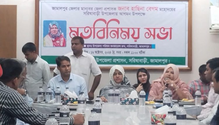 স্টাফ রিপোর্টার : জামালপুরের সরিষাবাডী উপজেলা প্রশাসন আয়োজিত জামালপুরের নবাগত জেলা প্রশাসক হাসিনা বেগম এর আগমন উপলক্ষে এ বিভিন্ন বিষয় নিয়ে মতবিনিময় সভা হয়েছে। বুধবার (১৬ অক্টোবর) উপজেলা পরিষদ কনফারেন্স হলরুমে এ মতবিনিময় ও পরিচিতি সভা অনুষ্ঠিত হয়েছে।