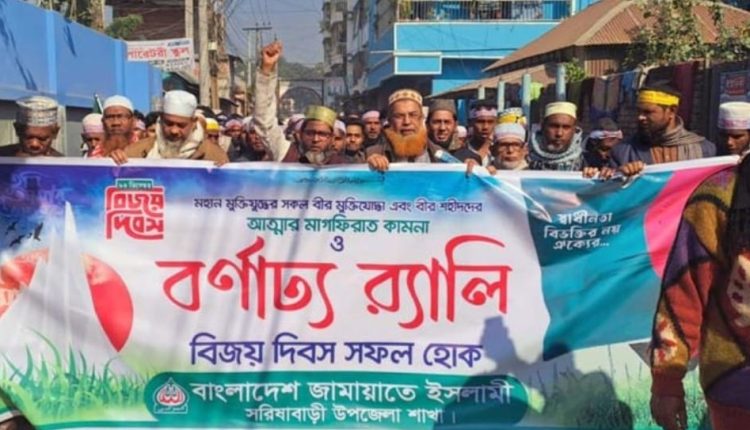 জামালপুরের সরিষাবাড়ীতে বাংলাদেশ জামায়াতে ইসলামী সরিষাবাড়ী উপজেলা শাখার অঙ্গ ও সহযোগী সংগঠনের উদ্যোগে বর্ণাঢ্য বিশাল শোভাযাত্রা ও সমাবেশ অনুষ্ঠিত হয়েছে। ১৬ ডিসেম্বর সোমবার সাড়ে ১১টার দিকে ঐতিহাসিক গণময়দানে সকাল থেকেই দলীয় অঙ্গ ও সহযোগী সংগঠনের নেতা-কর্মীরা জমায়েত হন। পরে একটি বর্ণাঢ্য বাশাল শোভাযাত্রা বের হয়। শোভাযাত্রাটি শিমলা বাজারসহ পৌরসভার প্রধান প্রধান সড়ক প্রদক্ষিণ করে। এরপর উপজেলা মুক্তিযোদ্ধা সংসদ চত্বরে মহান মুক্তিযুদ্ধের বীর যোদ্ধা ও শহিদদের আত্মার মাগফেরাত কামনায় দোয়া শেষে আরামনগর বাজার জি কে প্লাজার সামনে এসে সমাবেশে মিলিত হয়।
