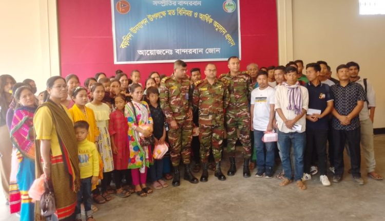 ২২(ডিসেম্বর) রবিবার বেলায় ২টায় সময়ে বান্দরবান ক্যান্টলমেন্ট সেনা উদ্যোগে আসন্ন বড় দিন উপলক্ষে বান্দরবান সদরের খ্রিস্টান ধর্মীয় বিলম্বের মাঝে আর্থিক সহায়তা প্রদান করেন বান্দরবান সেনা!