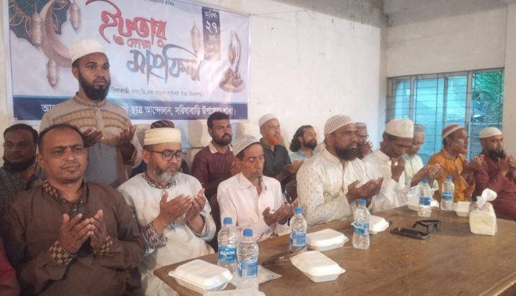 উক্ত ইফতার ও দোয়া মাহফিলে বৈষম্য বিরোধী ছাত্র আন্দোলন সরিষাবাড়ী উপজেলা শাখার সভাপতি তরিকুল ইসলাম রনি সভাপতিত্ব করেন। এতে স্বাগত বক্তব্য রাখেন বৈষম্য বিরোধী ছাত্র আন্দোলনের জামালপুর জেলা শাখার মুখ্য সম্পাদক আসাদুজ্জামান আসাদ, হেফাজতে ইসলাম সরিষাবাড়ী উপজেলা শাখার সভাপতি হাফেজ মাওলানা মুফতি হাফেজ মাওলানা মুখলেছুর রহমান জামিলী, গণতান্ত্রিক ছাত্র সংসদ এর কেন্দ্রীয় শাখার যুগ্ন আহবায়ক আহাদ বিন শোয়েব বক্তব্য রাখেন।