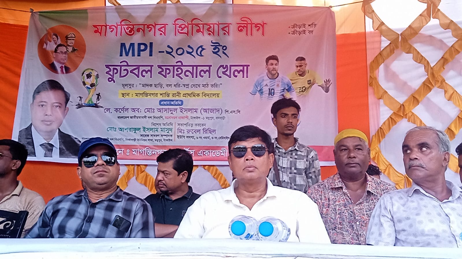 পাচালী করতে টুর্ণামেণ্টের কথা ভূলতেই বসেছিলাম। ফোট বল টূর্ণামেণ্টে আনুষ্ঠানিক শুভ উদ্বোধনী কার্জক্রম শেষ করে আরও ২ টি অনুষ্ঠানে যোগ দিতে কুশল বিনময় করে চলে আসেন। বিশেষ অথীতি হিসেবে উপস্থিত ছিলেন, সহোদর বড় ভাই, (অঃ) নেভাল ফোর্স – জনাব,আশরাফুল আলম (মাসুদ)।গোধূলী লগ্ন পর্যন্ত হৈ চৈ প্রতিদ্বন্তিতা পূর্ণ খেলায় অংশ গ্রহণ কারীদের মধ্যে পুরুস্কার বিতরণ সম্পন্ন করেন। ময়মনসিংহ একাদশ টাংগাইল একাদশ কে ৩-২ গোলে হারিয়ে চেম্পিয়ান ট্রপি জিতেন।