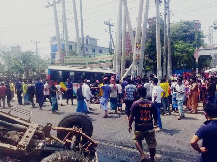 স্থানীয় ও পুলিশ সূত্রে জানা যায়, ঢাকা-ময়মনসিংহ মহাসড়কের ময়মনসিংহগামী লেনে চ্যাম্পিয়ন পরিবহনের একটি মিনিবাস একটি মাহিন্দ্রা ট্রাককে ওভারটেক করতে গিয়ে রাস্তার পাশের বৈদ্যুতিক খুটিতে লাগে। মিনিবাসের সামনের অংশ দুমড়ে মুচড়ে যায়। এসময় একজন অজ্ঞাত বৃদ্ধা নিহত হয়।