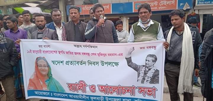 স্বাধীনতার মহান স্থপতি, বাংলার অবিসংবাদিত নেতা, রাজনীতির মহাকবি, জাতির পিতা বঙ্গবন্ধু শেখ মুজিবুর রহমানের স্বদেশ প্রত্যাবর্তন দিবস উদযাপন উপলক্ষে বিভিন্ন কর্মসূচী পালন করেছে বাংলাদেশ আওয়ামীলীগ ফুলবাড়ী উপজেলা শাখা।
