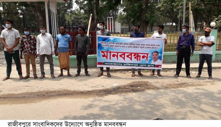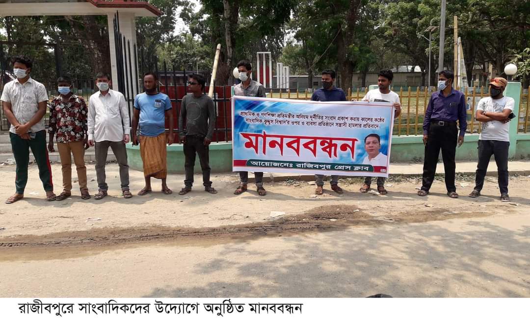 রৌমারীতে সাংবাদিকের ওপর হামলার প্রতিবাদে রাজিবপুরে মানববন্ধন