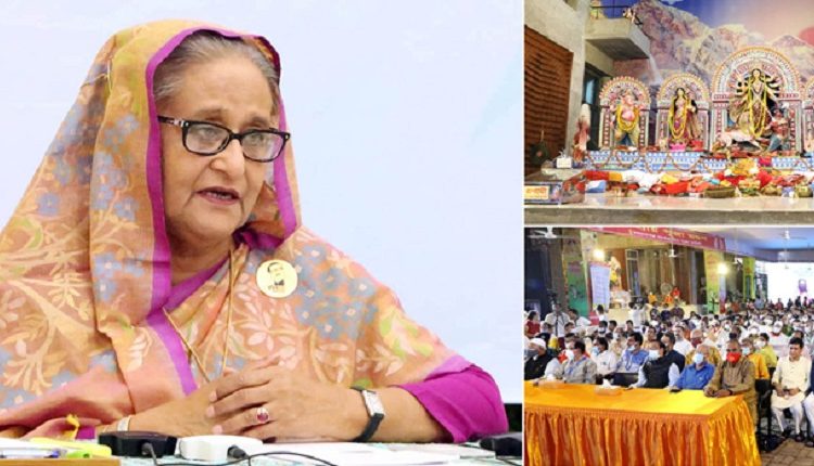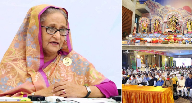 বক্তব্যের শুরুতে তিনি সারা দেশের সনাতন ধর্মের অনুসারীদের শারদীয় দুর্গাপূজার শুভেচ্ছা জানান। প্রধানমন্ত্রী বলেন, কিছু মানুষের মধ্যে দুষ্ট বুদ্ধিটা আছে, যখন একটা জিনিস খুব সুন্দরভাবে চলছে তখন সেটা নষ্ট করা; বাংলাদেশ যখন উন্নয়নের পথে দ্রুত এগিয়ে যাচ্ছে সেই সময় এই যাত্রাটাকে ব্যাহত করা এবং দেশের মধ্যে সমস্যা তৈরি করা।