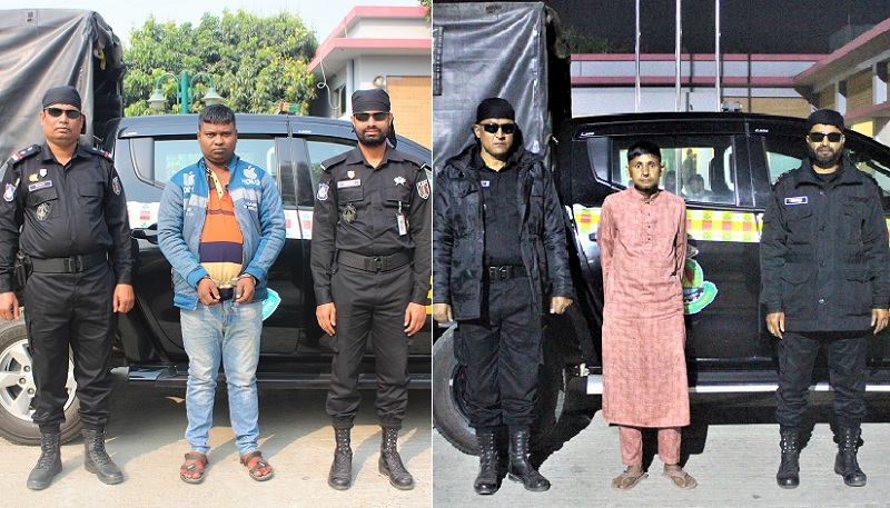 গ্রেফতারকৃত ফেন্সিডিল ব্যবসায়ী গাইবান্ধা জেলার পলাশবাড়ী থানার উত্তর সাবদিন (মরিচাপুর) গ্রামের মো. খেতাব উদ্দিন প্রধানের ছেলে মো. আনছার আলী প্রধান (২৭) ও ইয়াবা ব্যবসায়ী দিনাজপুর জেলার হাকিমপুর থানার দক্ষিণ বাসুদেবপুর গ্রামের মো. নুরুল ইসলামের ছেলে মো. জুয়েল (৩২)।