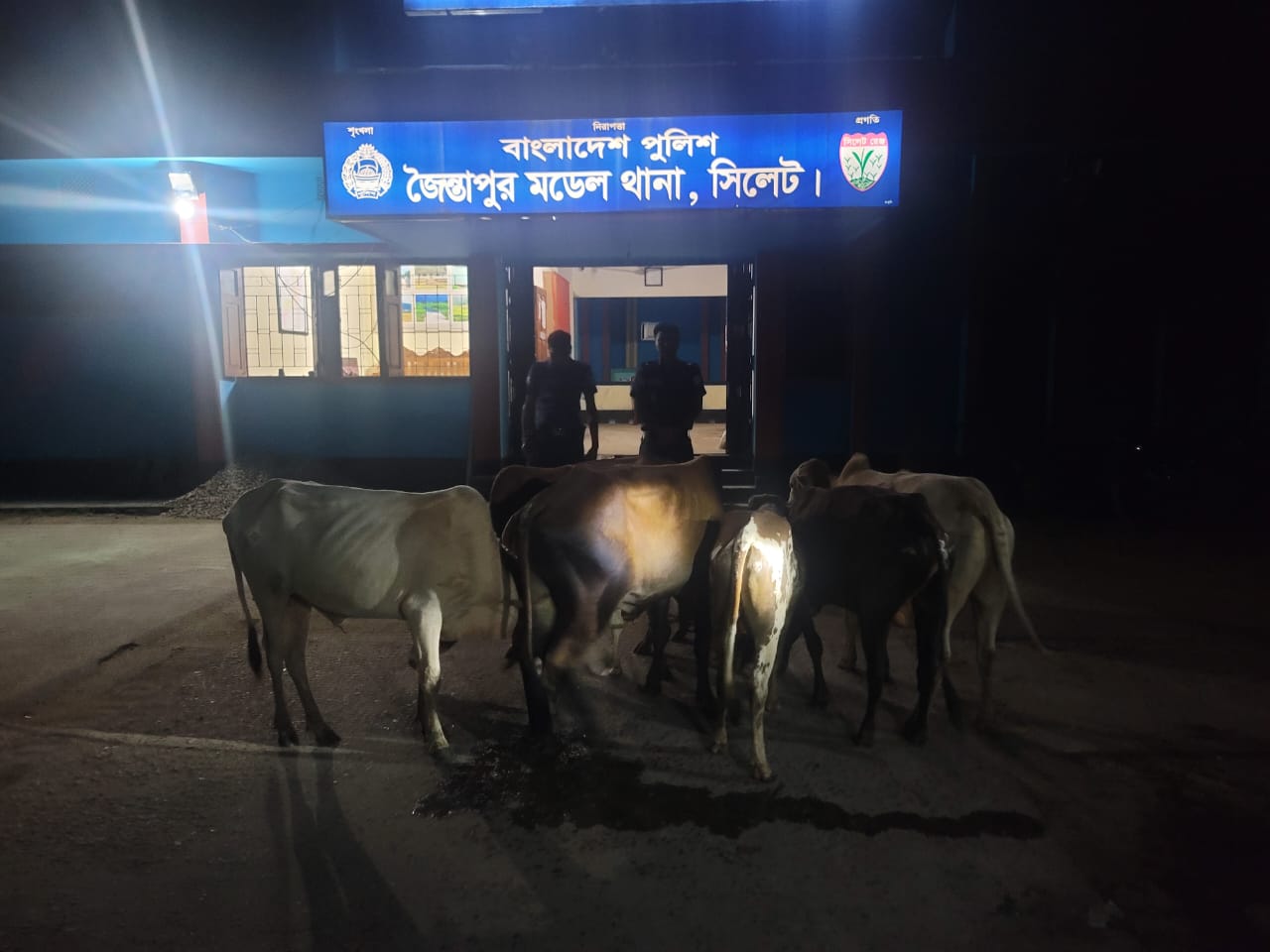 মো:দুলাল হোসেন রাজু, জৈন্তাপুর (সিলট)প্রতিনিধি: সিলেটের জৈন্তাপুরে জৈন্তাপুর মডেল থানা পুলিশের অভিযানে ভারতীয় চোরাই পথে আসা ৭টি গরুসহ এক চোরাকারবারীকে গ্রেফতার করেছে জৈন্তাপুর মডেল থানা পুলিশ গ্রেফতারকৃত ব্যাক্তির নাম মো.আলমগীর হোসেন(৩০) সে ১নং নিজপাট ইউনিয়নের ডিবির হাওড় গ্রামের আলী হোসেন’র ছেলে। পুলিশ সুত্রে জানাযায়, ১৭ অক্টোম্ভর ২০২৩ ইং রাত সাড়ে ৩ টার সময় গোপন সংবাদের বিত্তিতে জৈন্তাপুর মডেল থানার অফিসার ইনচার্জ (ওসি) মোঃ তাজুল ইসলাম পিপিএম’র দিক নির্দেশনায়, এসআই মো:হাফিজুর রহমান’র নের্তৃত্বে সঙ্গীয় ফোর্সসহ উপজেলার ১নং নিজপাট ইউনিয়ন এর ডিবির হাওর গ্রাম সংলগ্ন এলাকা থেকে ০৭ টি ভারতীয় গরু সহ ১জন চোরাকারবারীকে গ্রেফতার করেন।