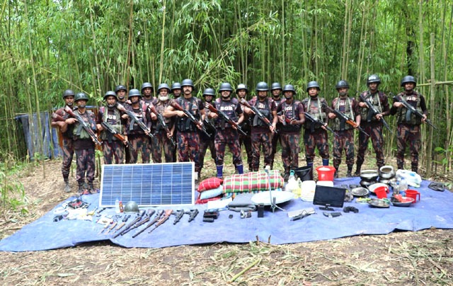 রুমা ব্যাটালিয়ান (৯ বিজিবি)র অধিনায়ক লে. কর্নেল হাসিবুল হক, পিপিএম, পিএসসি জানায়, জেলার রুমার দুর্গম সীমান্তবর্তী দোপানিছড়া এলাকা সংলগ্ন গহীন জঙ্গলে একটি আস্তানা স্থাপন করে একদল পাহাড়ী সন্ত্রাসী তাদের কার্যক্রম চালাচ্ছে। এমন তথ্যের ভিত্তিতে বিজিবির রুমা ব্যাটালিয়ান (৯ বিজিবি) এর অধিনায়ক লেফটেন্যান্ট কর্নেল হাসিবুল হক, পিপিএম, পিএসসি’র নেতৃত্বে বান্দরবানের রুমার দুর্গম সীমান্তবর্তী দোপানিছড়ার গহীন জঙ্গলে একটি সন্ত্রাস বিরোধী বিশেষ অভিযান পরিচালনা করা হয়। এসময় সন্ত্রাসীদের একটি আস্তানা সনাক্ত করে আস্তানাটি থেকে ২ টি অটোমেটিক কারবাইন অ্যাসল্ট রাইফেল, ১টি সেমি অটোমেটিক অ্যাসল্ট রাইফেল, ৩ টি এসবিবিএল, ২১ রাউন্ড তাজা গুলি, ১টি অত্যাধুনিক প্রযুক্তির ড্রোন, ১টি অত্যাধুনিক প্রযুক্তির সিগন্যাল জ্যামার, ১টি অডিও, ভিডিও রেকর্ডার, ১টি ভিডিও ক্যামেরা, ১টি অত্যাধুনিক প্রযুক্তি নির্ভর গোয়েন্দা বোতাম ক্যামেরা, ১টি শবু ডিভাইস হিডেন ভিডিও রেকর্ডার, ১টি দূরবীণ,২টি ওয়াকিটকি, ১টি ল্যাপটপ, ২টি পাওয়ারফুল লাইট, ১টি সোলার সিস্টেম, ১টি আকাশ টিভি রিসিভার ও ১টি আমব্রেলা, ২টি এন্ড্রয়েড মোবাইল, ২টি বাটন মোবাইল, দেশীয় ধারালো অস্ত্রসহ বিভিন্ন সরঞ্জাম উদ্ধার করা হয়।