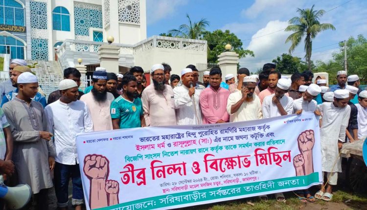 ভারতে ইসলাম ধর্ম ও রাসুলুল্লাহ (সা:) এর নামে কটুক্তির প্রতিবাদে সরিষাবাড়ীতে বিক্ষোভ মিছিল সমাবেশ