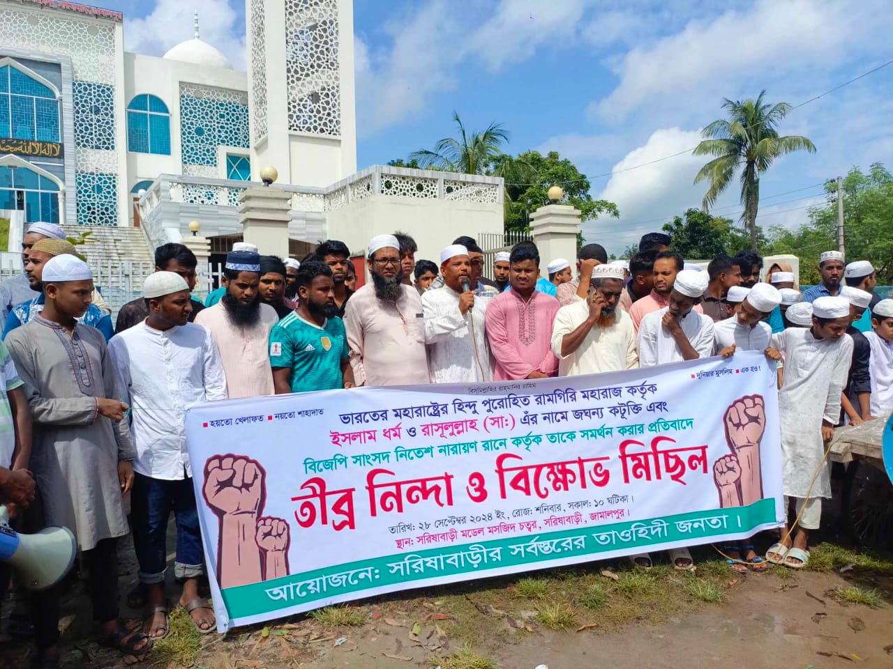 হয়তো খেলাফত,নয়তো শাহাদাত, দুনিয়ার মুসলিম এক হও এ শ্লোগান কে সামনে রেখে ভারতের মহা রাষ্ট্রের হিন্দু পুরোহিত রামগিরি মহারাজ কর্তৃক ইসলাম ধর্ম ও রাসুলুল্লাহ (সা:) এর নামে জঘন্য কটুিক্ত এবং বিজেপি সাংসদ নিতেশ নারায়ণ রানে কর্তৃক তাকে সমর্থন করার প্রতিবাদে জামালপুরের সরিষাবাড়ীতে তীব্র নিন্দা ও বিক্ষোভ মিছিল ও সমাবেশ করা হয়েছে।