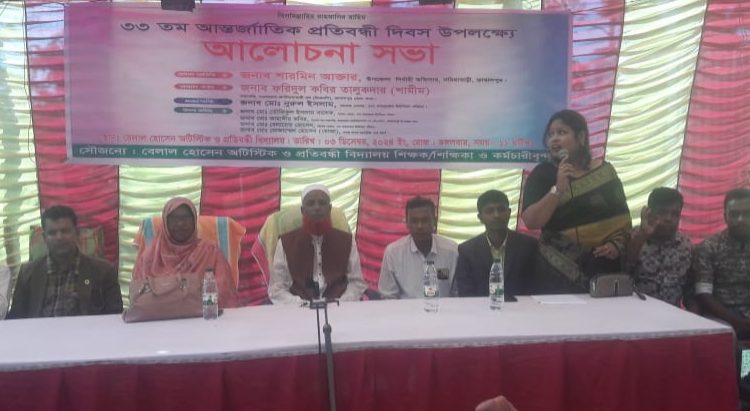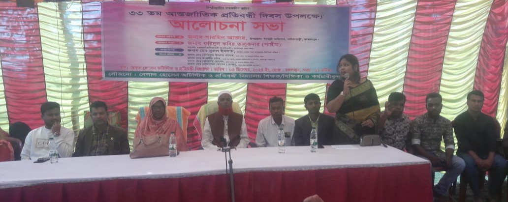 মঙ্গলবার (৩ ডিসেম্বর) সকাল ১২টায় উপজেলার কামরাবাদ ইউনিয়নের বড়বাড়িয়া গ্রামে বেলাল হোসেন অটিস্টিক ও প্রতিবন্ধী বিদ্যালয়ের সহকারী শিক্ষক ফারজানা হোসেনের সঞ্চালনায় বিদ্যালয়ের ম্যানেজিং কমিটির সভাপতি মোহাম্মদ নূরুল ইসলাম মেম্বারের সভাপতিত্বে বক্তব্য রাখেন, বেলাল হোসেন অটিস্টিক প্রতিবন্ধী বিদ্যালয়ের প্রধান শিক্ষক মোছাম্মদ মর্জিনা বেগম, সরিষাবাড়ী রিপোর্টার্স ক্লাবের সভাপতি মোঃ গোলজার হোসেন, দপ্তর সম্পাদক মোঃ ফরিদ সরকার, সহকারী শিক্ষক মোহাম্মদ কাইয়ুম, মোঃ শহীদুল ইসলাম, বিশিষ্ট সমাজ সেবক মোহাম্মদ মোজাম্মেল হোসেন মোজা, বিজয় সংবাদের সরিষাবাড়ী প্রতিনিধি সাংবাদিক রাঙা মিয়া ও সাংবাদিক হারুনুর রশিদ, স্কুলের অভিভাবকবৃন্দ, ও অটিস্টিক ও প্রতিবন্ধী বিদ্যালয়ের শিক্ষক-শিক্ষিকাসহ শিক্ষার্থীবৃন্দ।