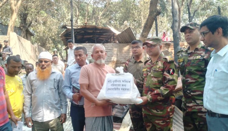 মঙ্গলবার (২৫ মার্চ) দুপুরে সড়ক ও জনপদ কলোনীতে ক্ষতিগ্রস্ত পরিবারের মাঝে সহায়তা তুলে দেন সেনা জোনের কমান্ডার লে: কর্নেল এএসএম মাহমুদুল হাসান।